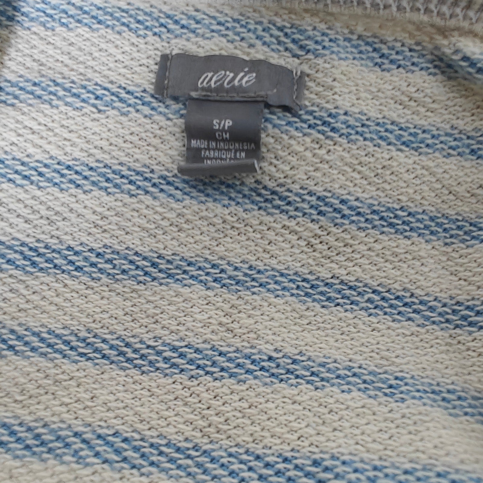 Aerie Blue Stripe Henley Waffle Knit Pullover Top Women’s Small