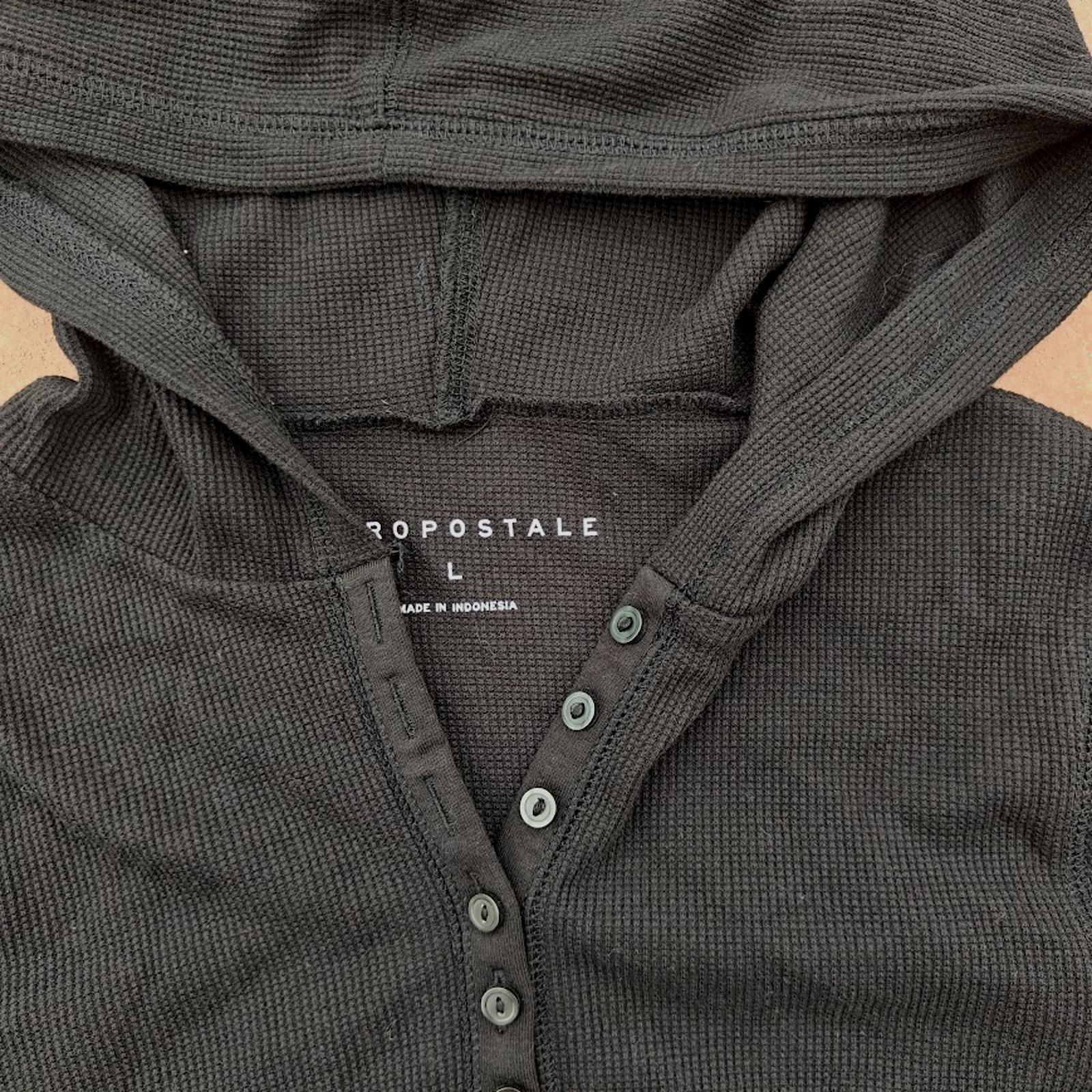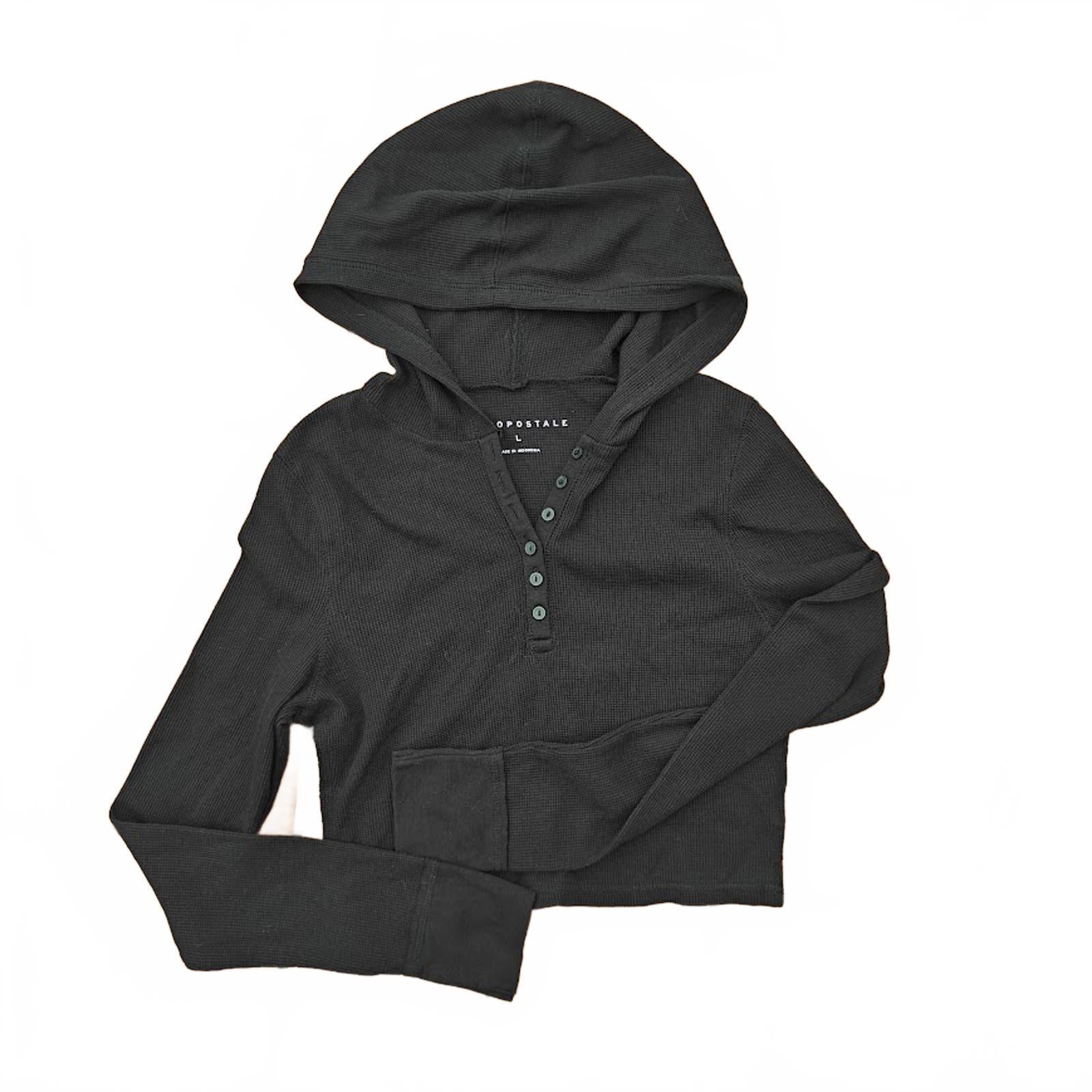 Aeropostale Black Waffle Knit Hoodie Women’s Large Lightweight Henley Pullover