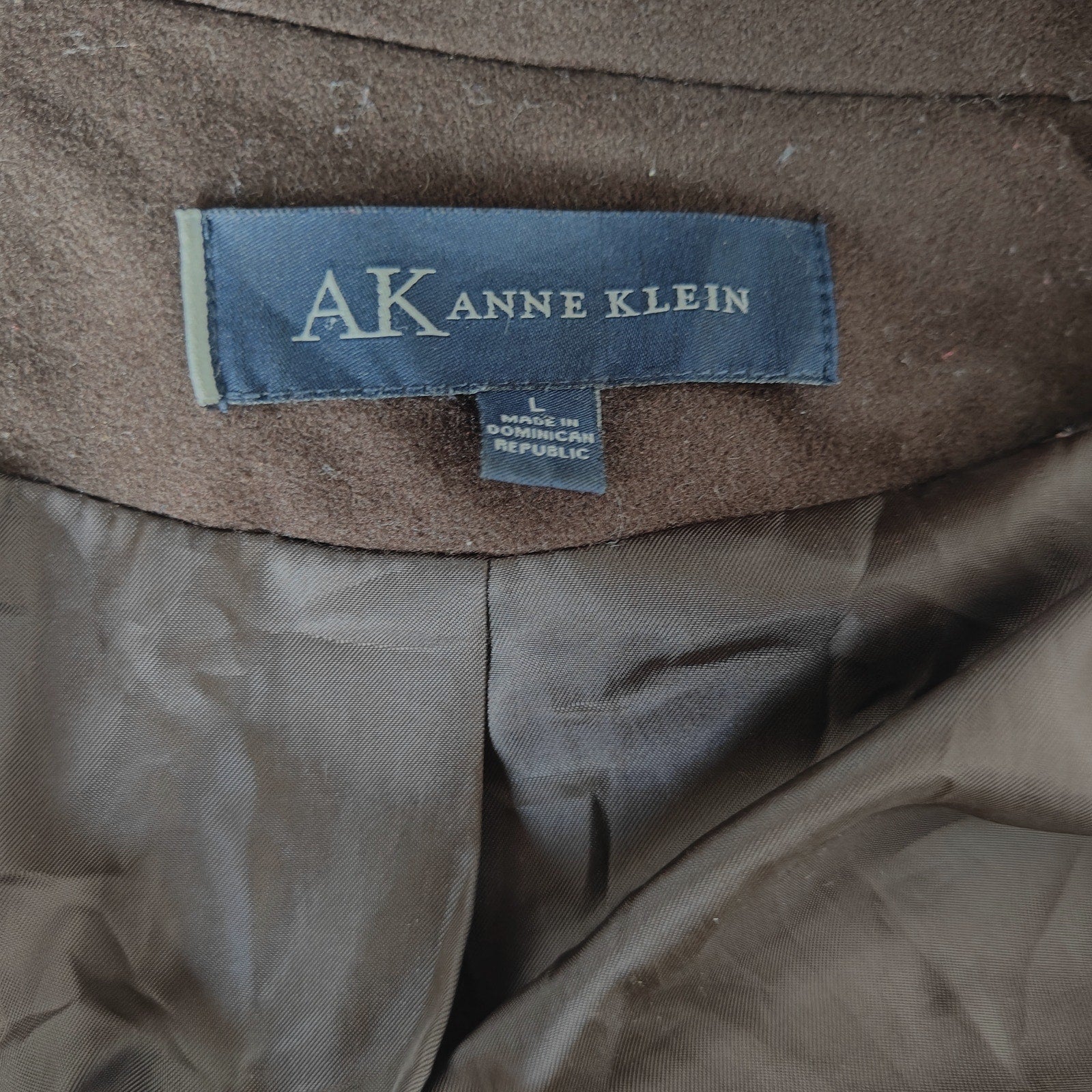 Classic and elegant Anne Klein wool blend coat in rich brown. Features a double-breasted button front, wide lapel collar, and side pockets for a timeless, polished look. Fully lined for comfort and warmth. A versatile outerwear piece perfect for work, travel, or casual outings during cooler seasons.