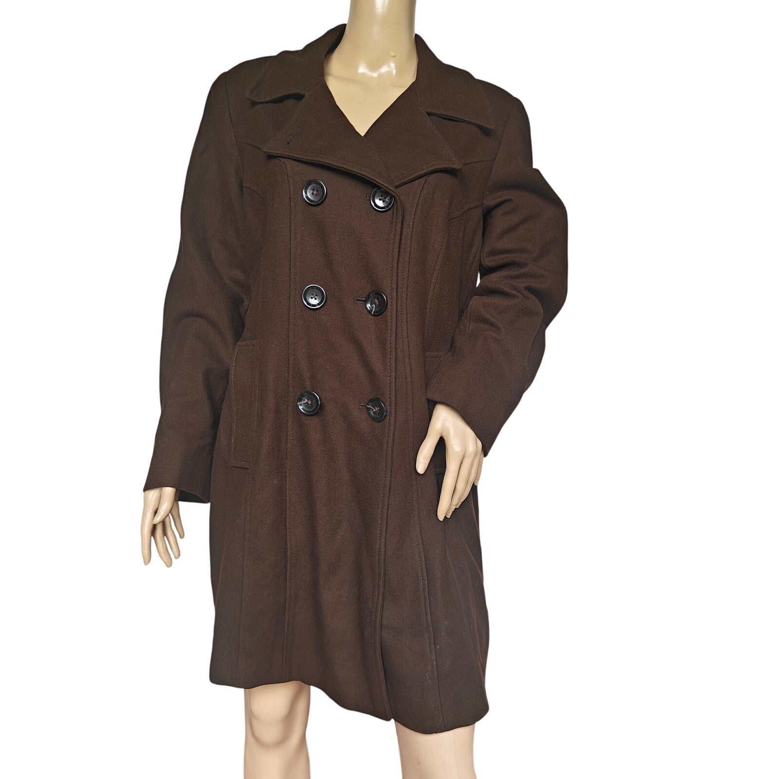 Anne Klein Wool Blend Double Breasted Brown Peacoat Women’s Size L