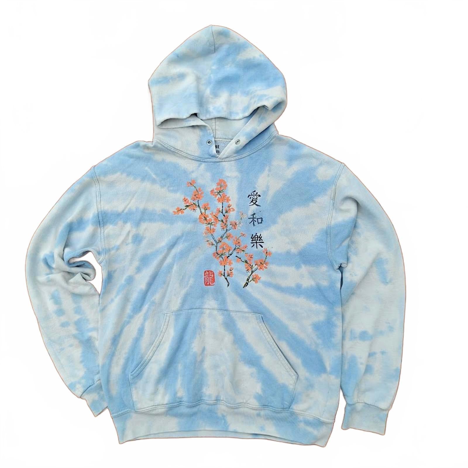 Artist Union Tie Dye Hoodie Blue Floral Cherry Blossom Graphic Streetwear