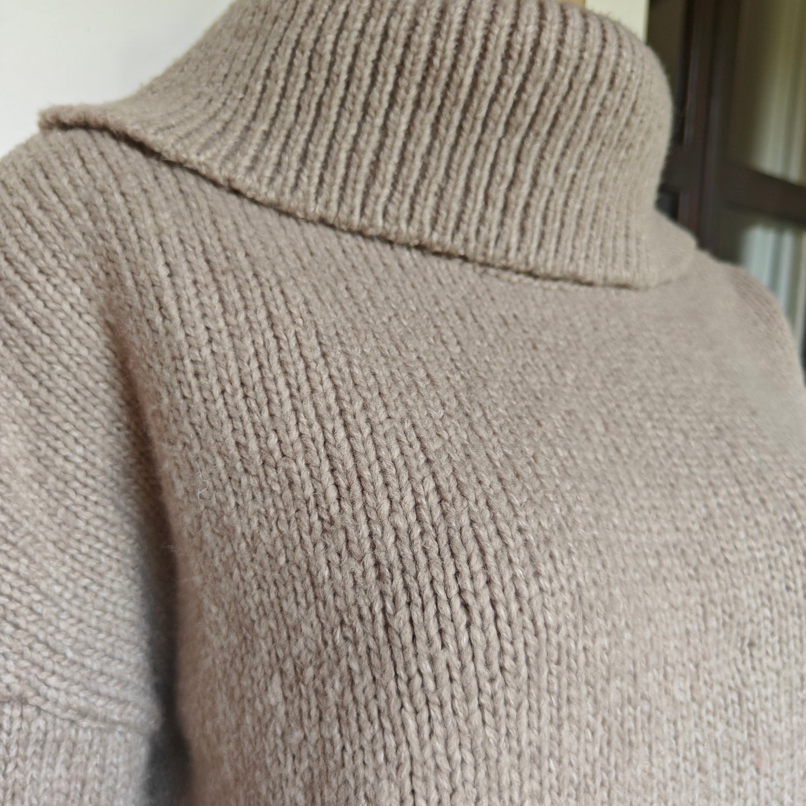Cozy Banana Republic turtleneck sweater in a soft taupe beige. Chunky rib-knit with relaxed, slightly oversized fit, slouchy funnel neck, long sleeves, and wide rib cuffs/hem—perfect for cold-weather layering. Women’s size Medium. Pre-owned and in good condition; no major flaws noted—please zoom photos for details.