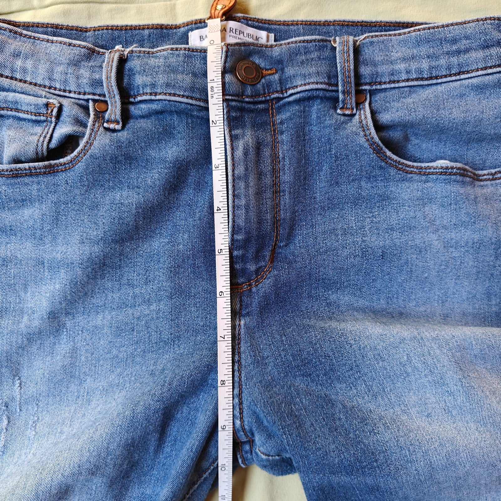 Comfy Banana Republic skinny jeans in a versatile medium wash with light distressing at the knees. Classic 5-pocket style, zip fly, and lots of stretch for a flattering, move-with-you fit. Tagged 31 Skinny. Great everyday denim to wear with tees, sweaters, or blazers.