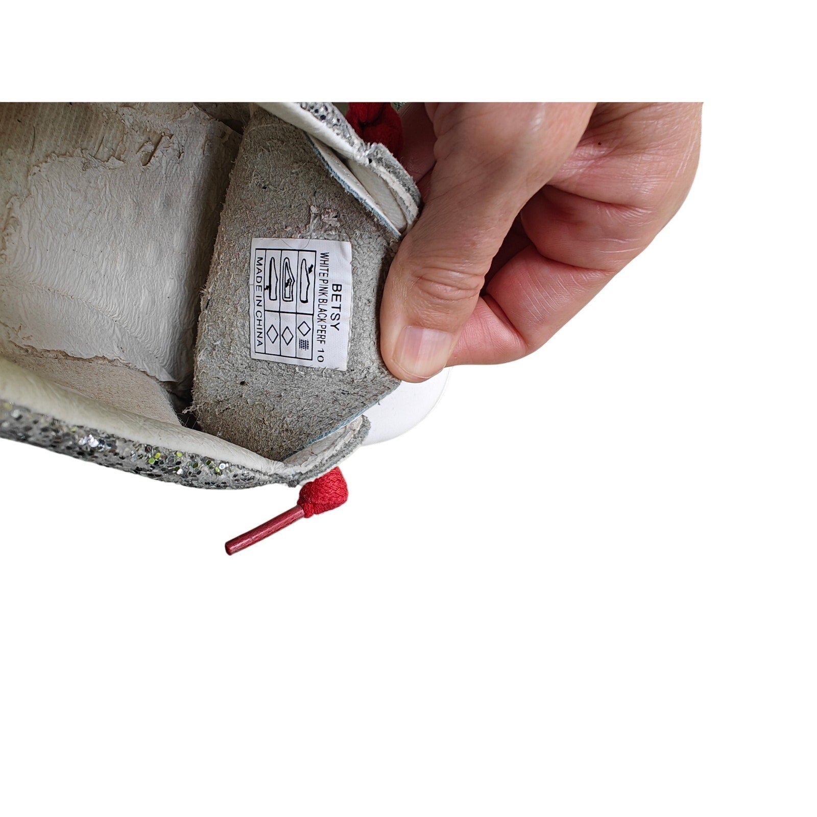 Colors: White, silver glitter, navy star, gold heel, red laces