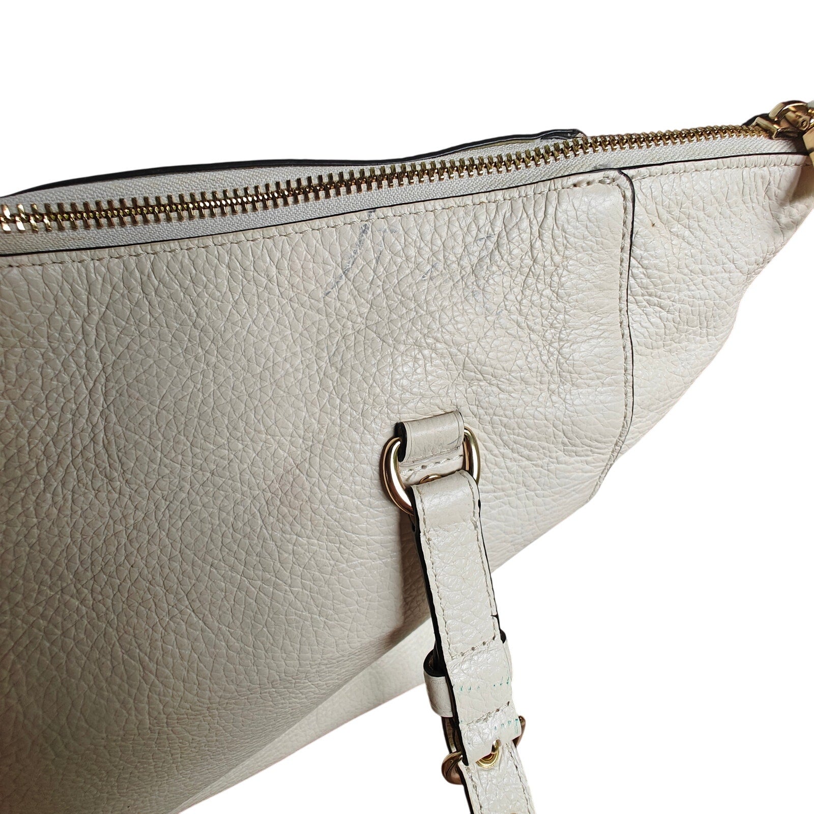 Coach Pebbled Leather Zip-Top Tote Bag – Chalk/Off-White, Gold Hardware, Front Zip Pocket & Hangtag