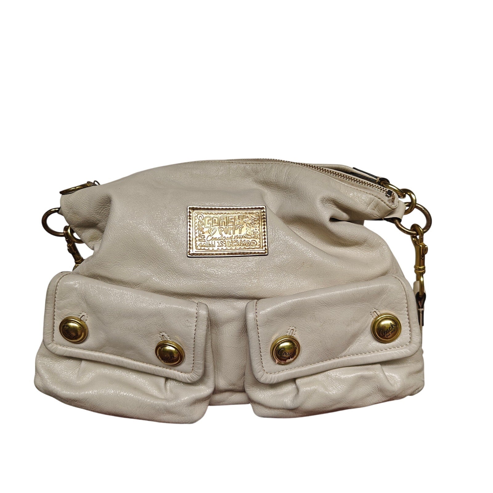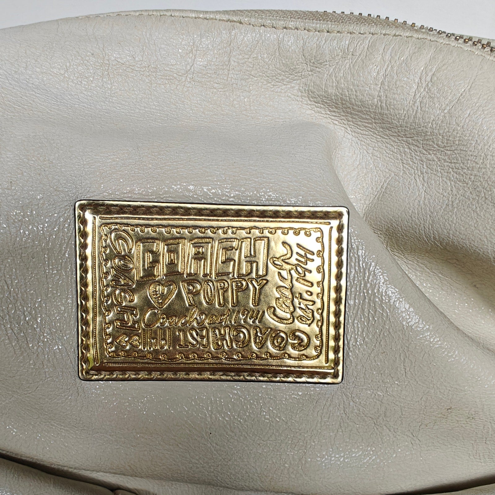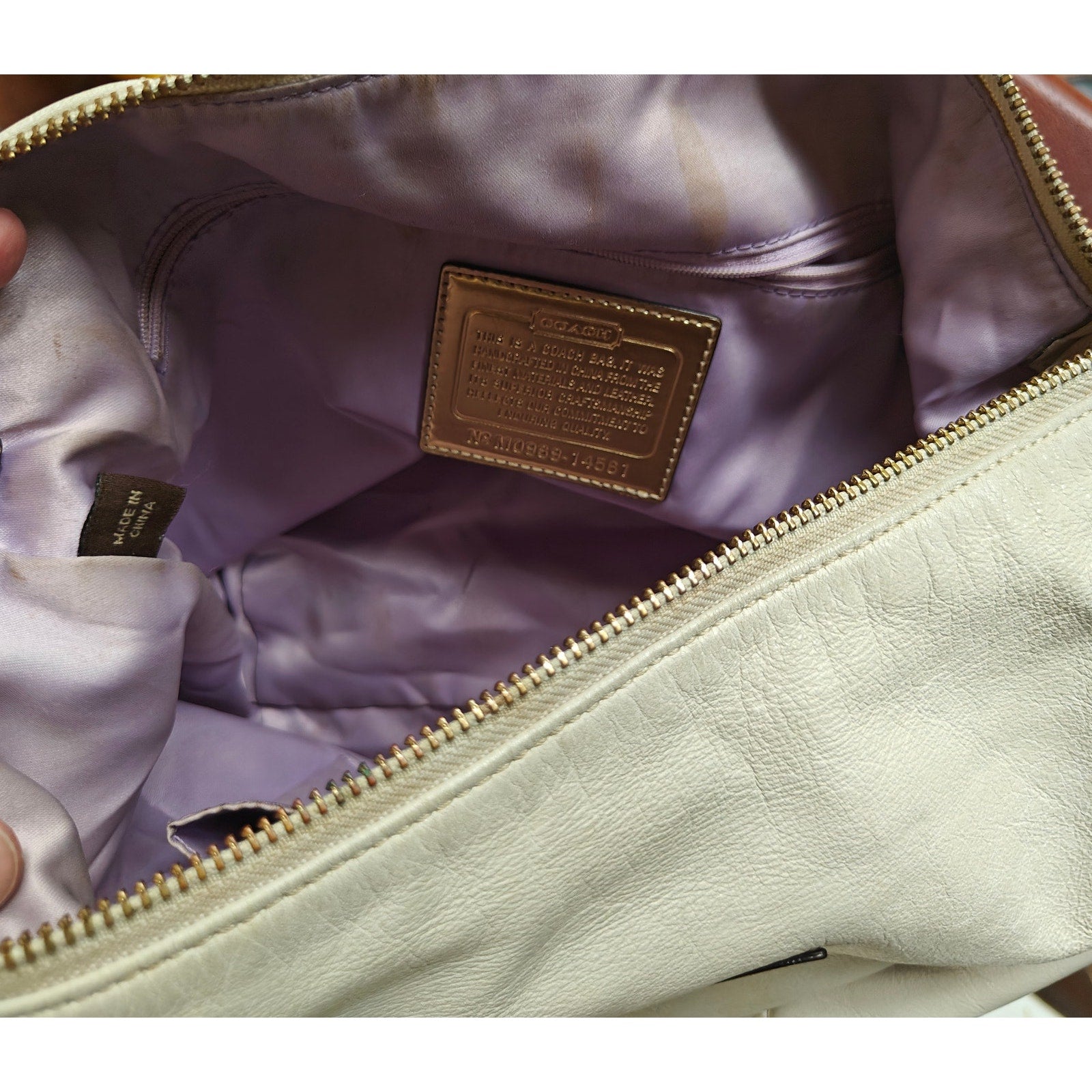 Coach Poppy shoulder bag, leather hobo, ivory handbag, Y2K Coach, zip top, pocket hobo 14681.