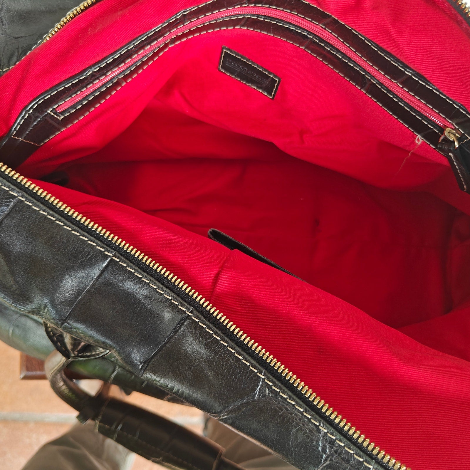 Dooney & Bourke Black Croc Embossed Medicine Bag Leather Satchel Red Lining