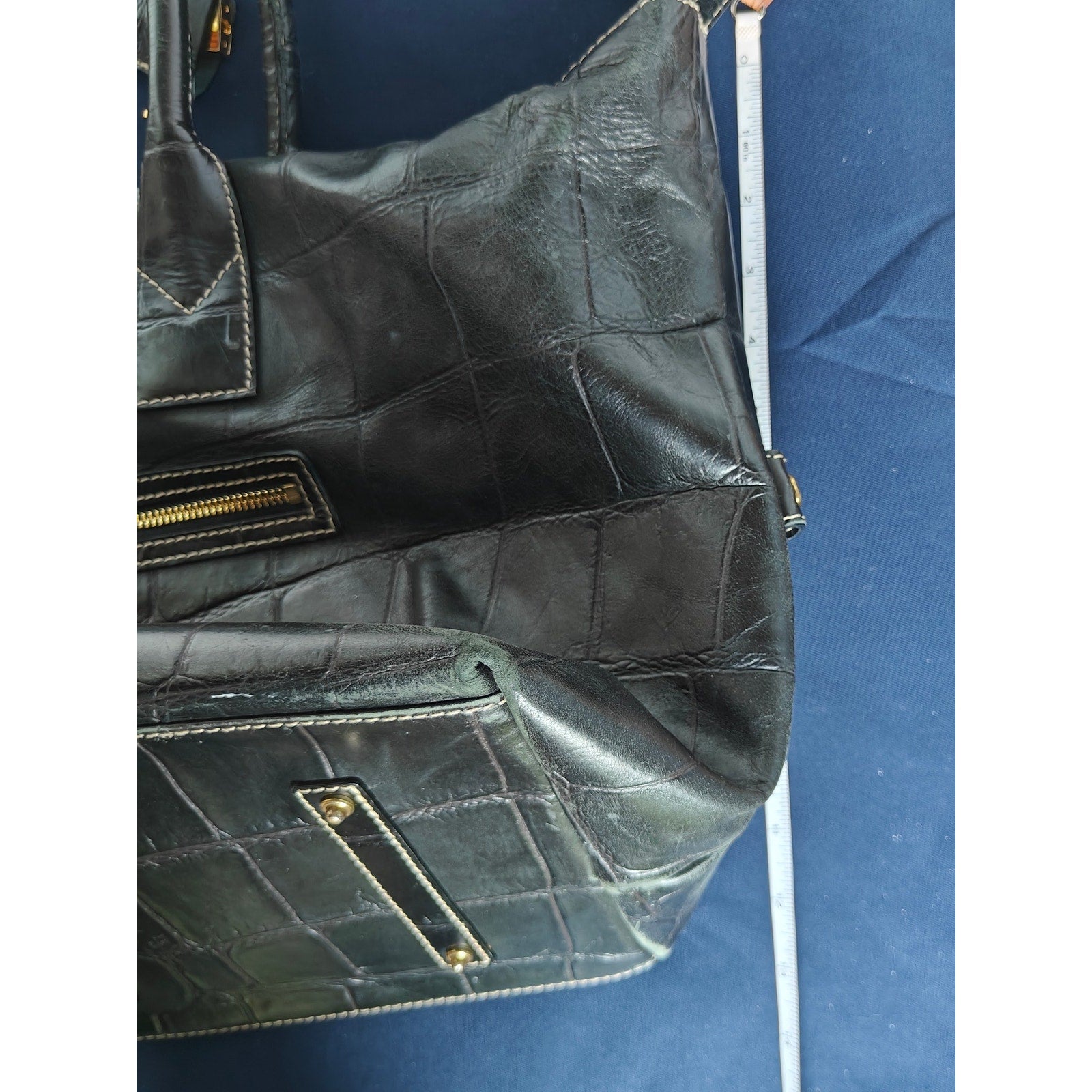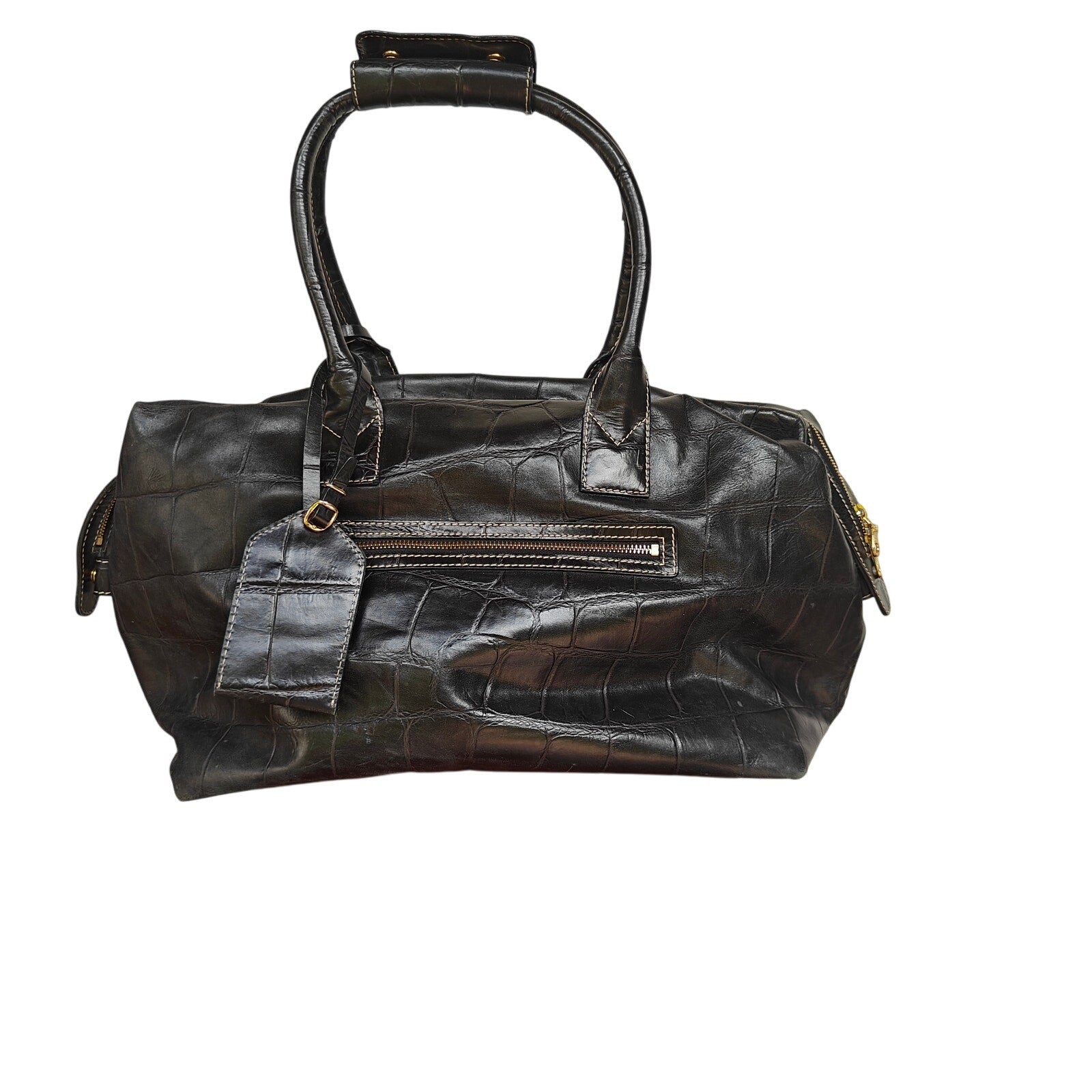 Classic Dooney & Bourke medicine bag in black croc-embossed leather.