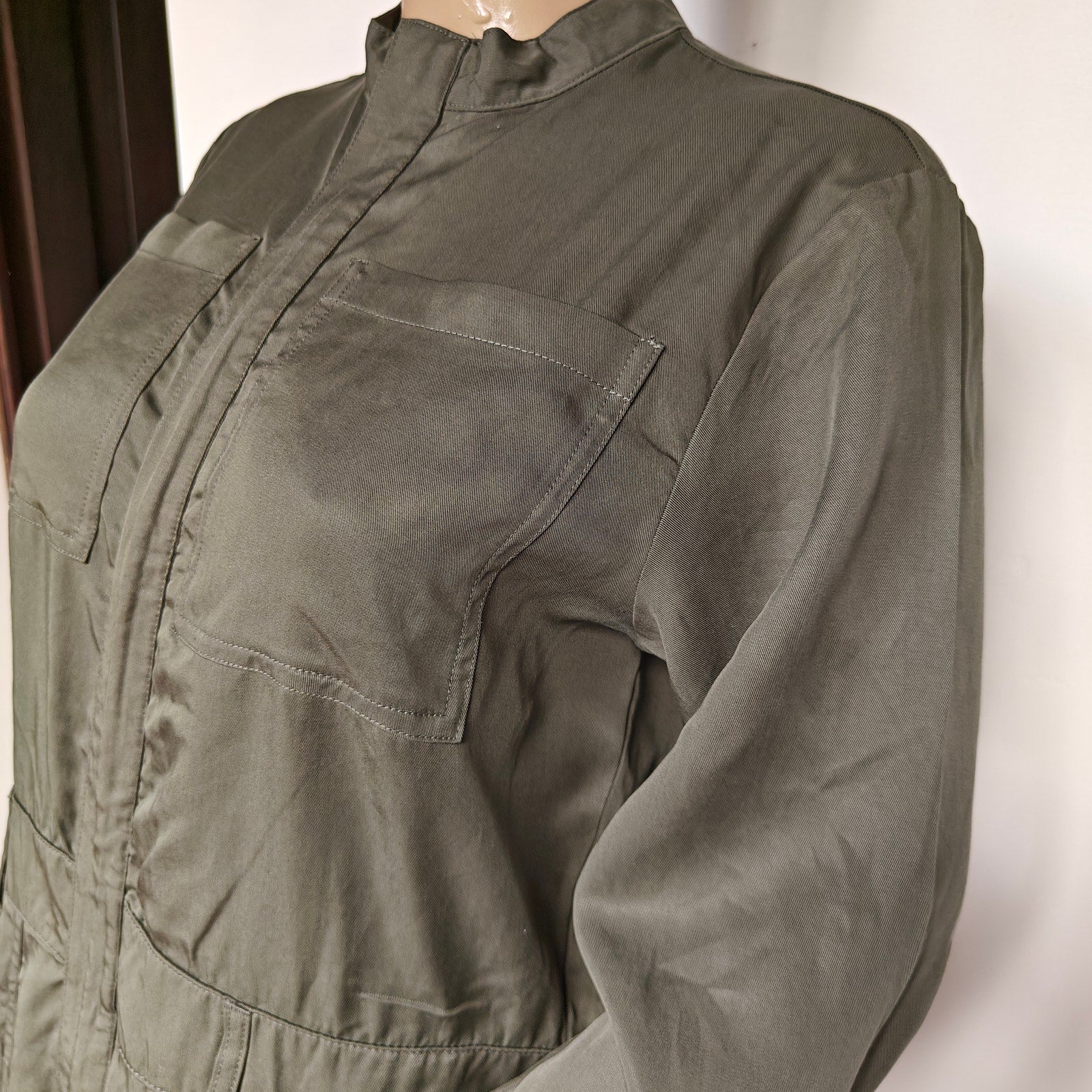 Chic Fabletics long-sleeve utility jumpsuit in olive green, size XS.