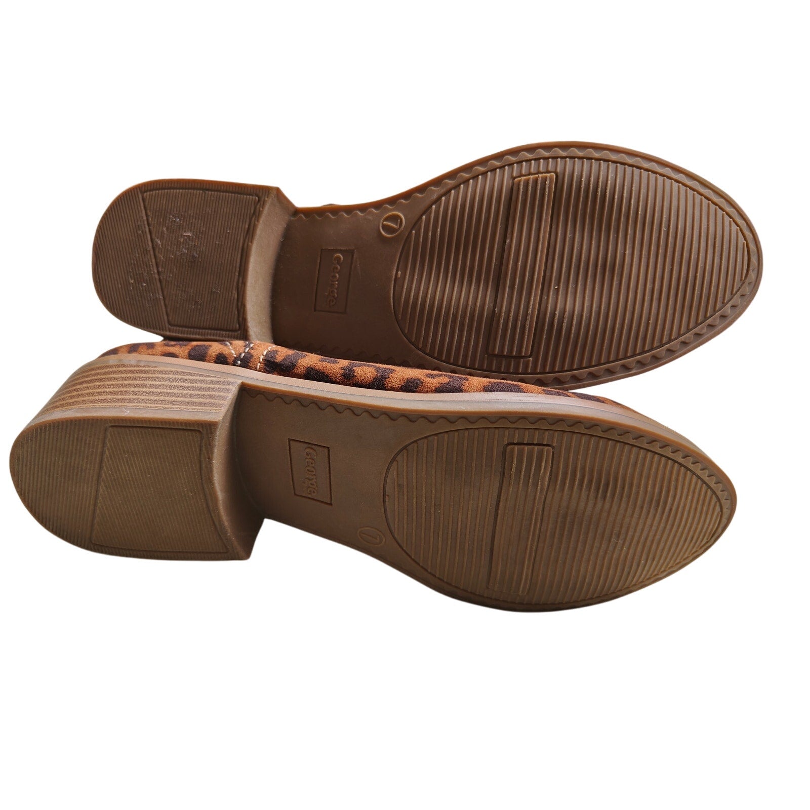 Step out in style with these George leopard print ankle boots, the perfect statement piece to elevate any outfit. These boots feature a trendy animal print design, convenient side zipper closure, and a comfortable low block heel for all-day wear. Great for pairing with jeans, skirts, or dresses.