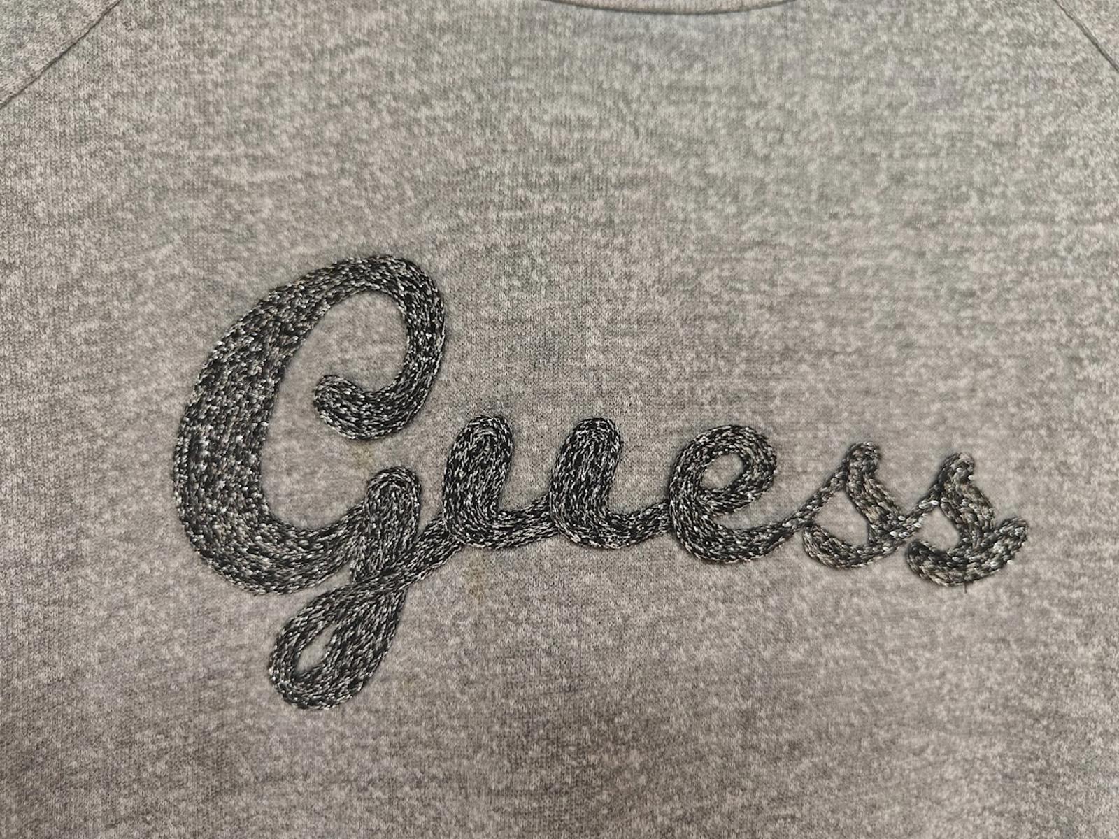 Retro-styled Guess brand crewneck sweatshirt with metallic embellishment. Good condition.