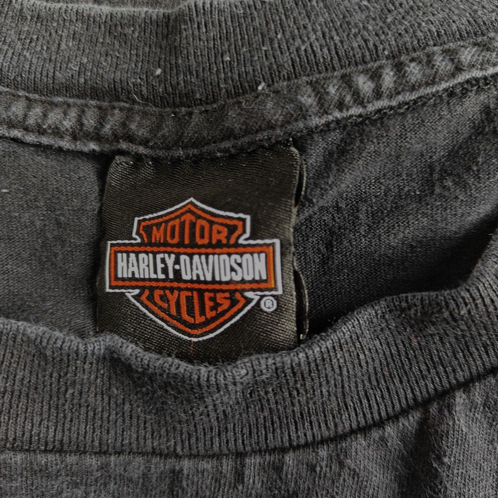 Classic Harley-Davidson graphic tee in black featuring a retro pin-up design and “Harley-Davidson Motorcycles” text. Soft cotton crew neck, short sleeves—perfect for riding days or casual streetwear.