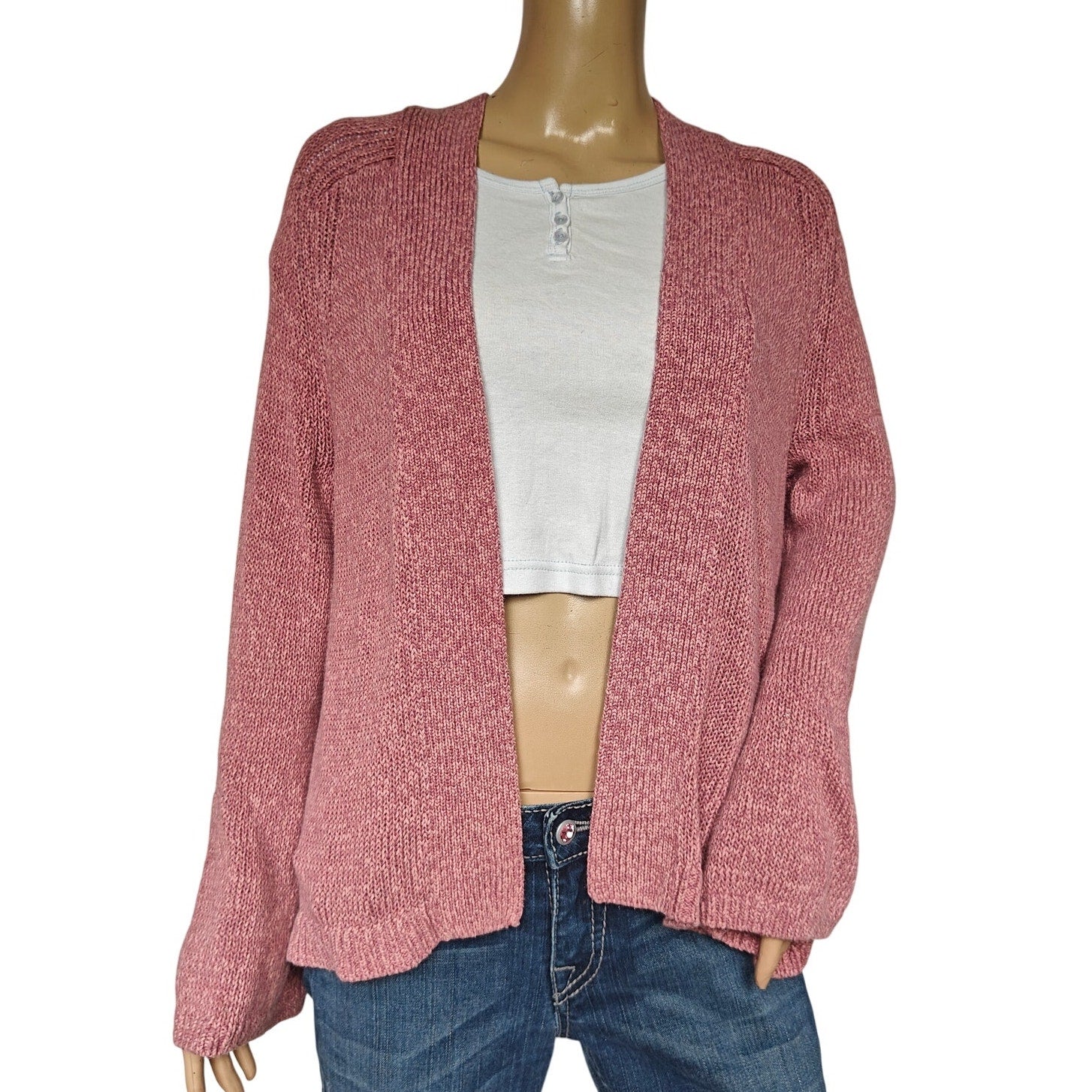LOFT Open Front Cardigan Sweater L Dusty Rose Textured Knit Ramie Blend