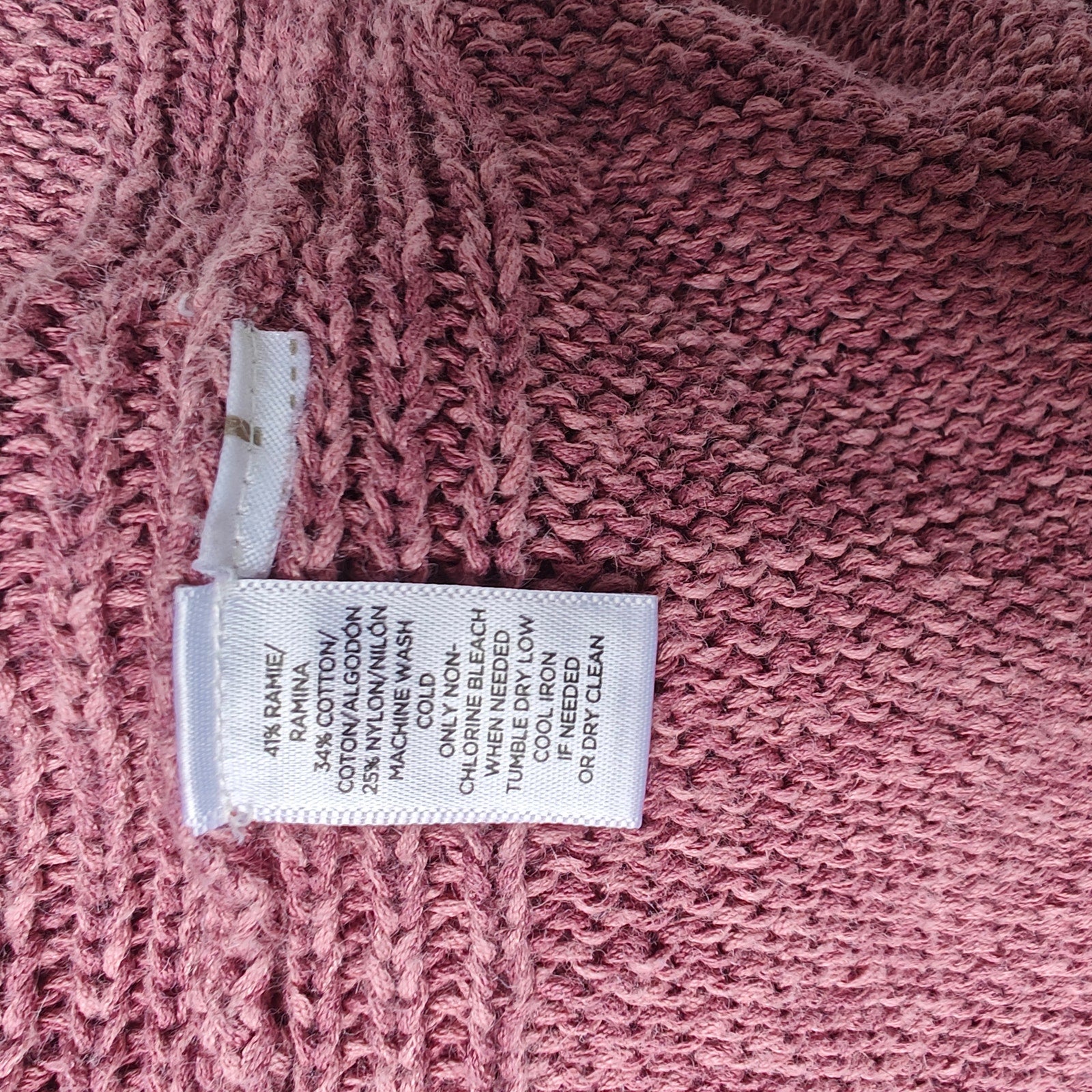 Ann Taylor LOFT women’s open-front cardigan in a pretty dusty rose/mauve. Soft, mid-weight textured knit with rib cuffs and hem—great for layering over tees, blouses or dresses. Classic long sleeves, relaxed fit, and easy throw-on style. Ramie/cotton/nylon blend for breathable softness and shape retention.