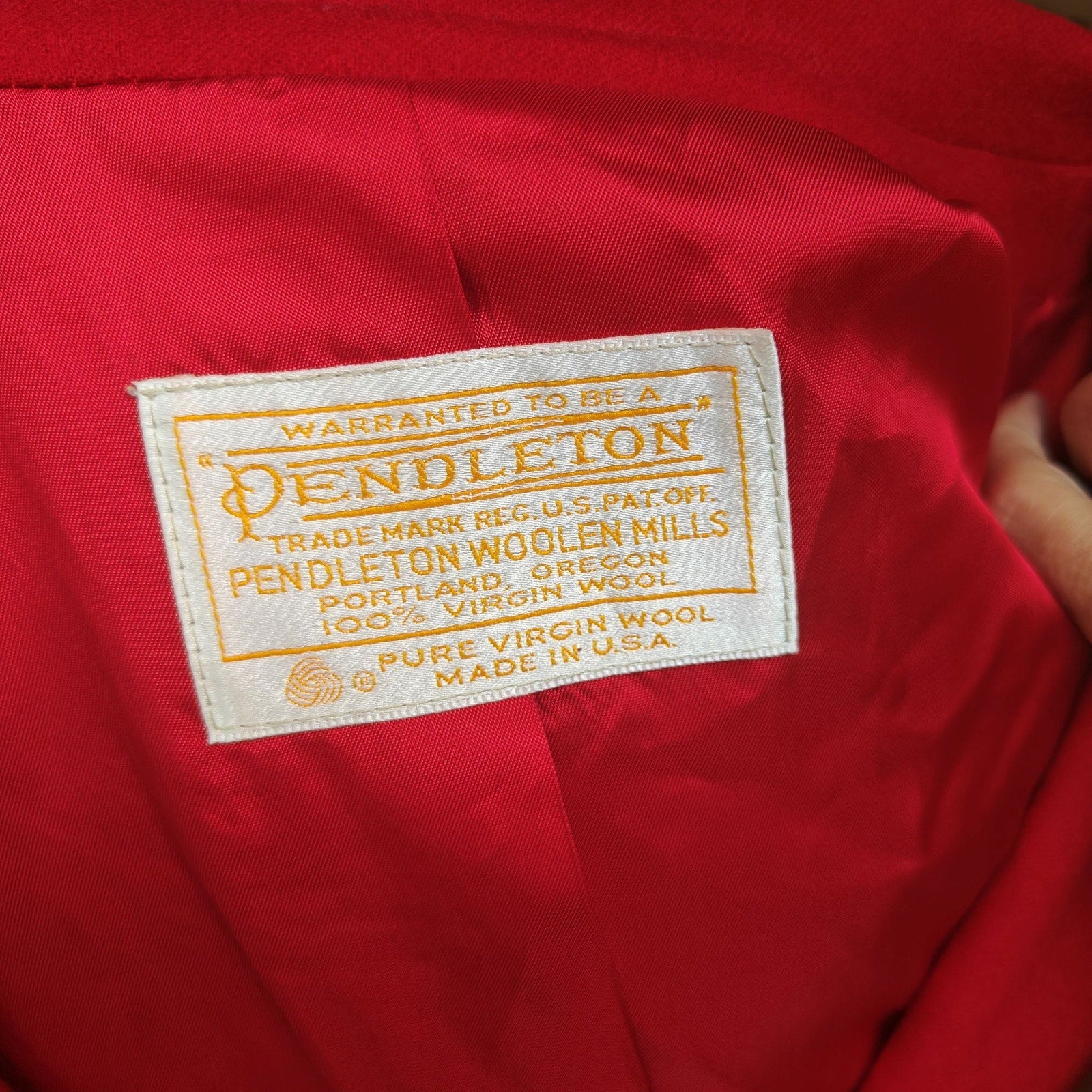 Era/age: Vintage late 1980s–1990s (based on the Warranted to Be a Pendleton label with Woolmark and the oversized, power-shoulder silhouette)
