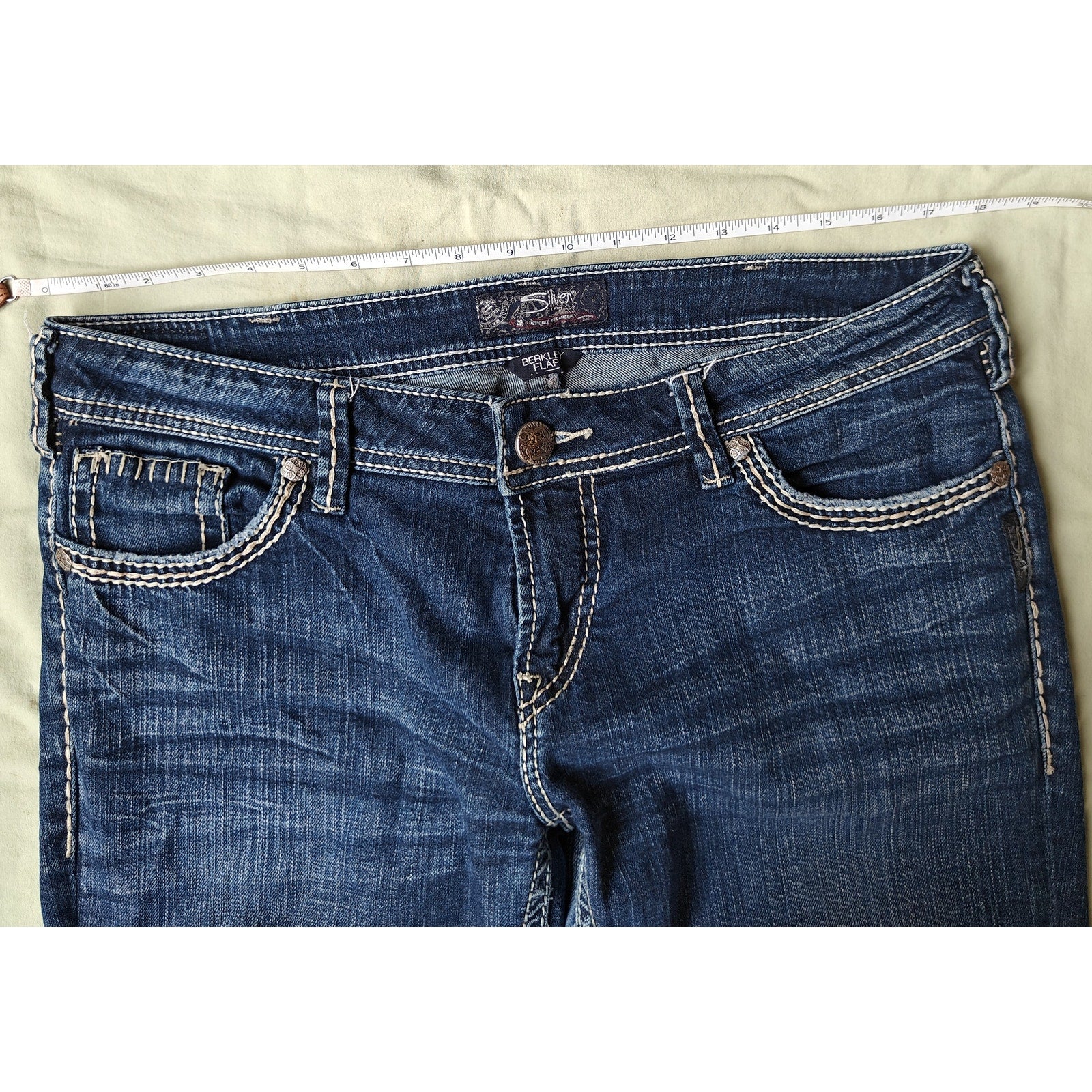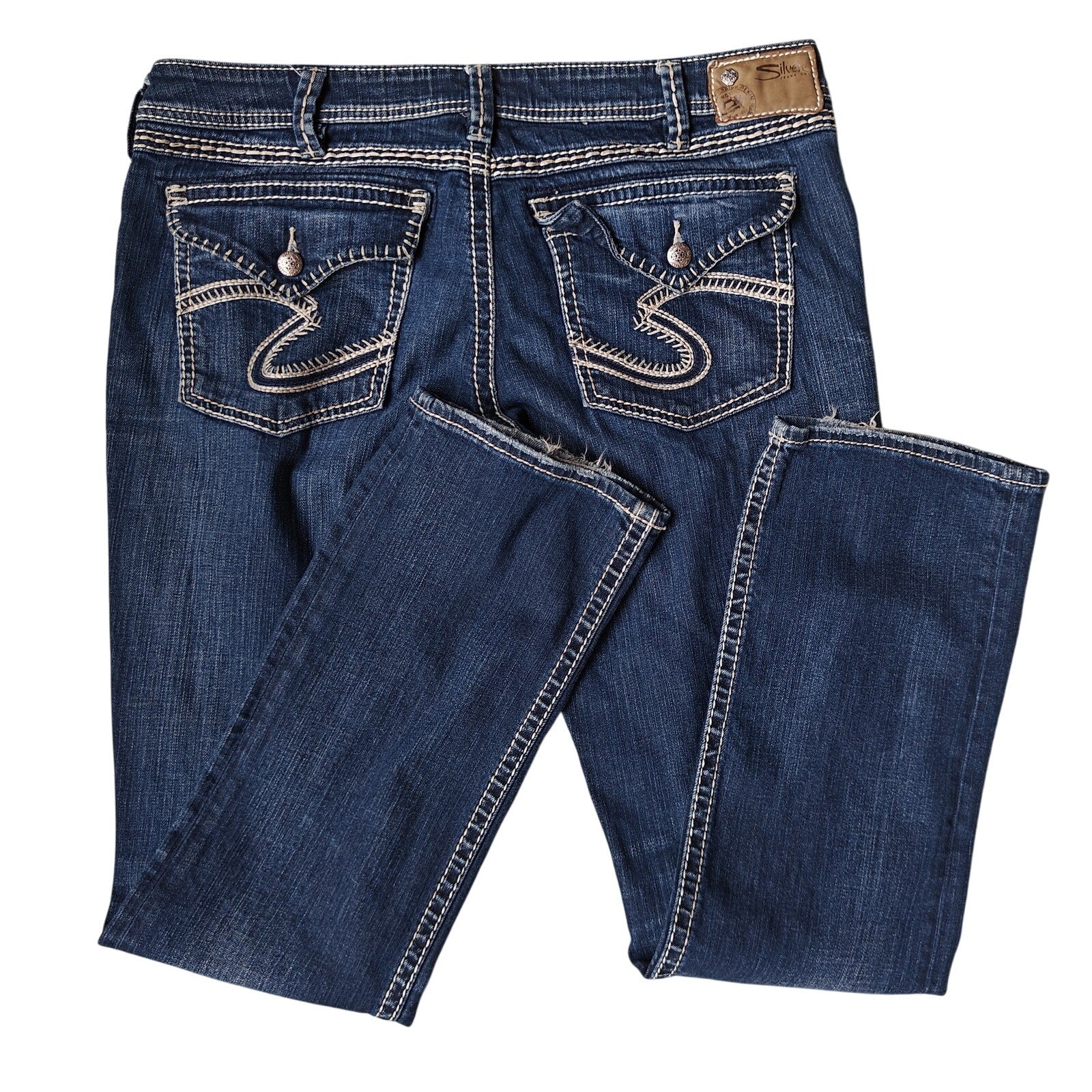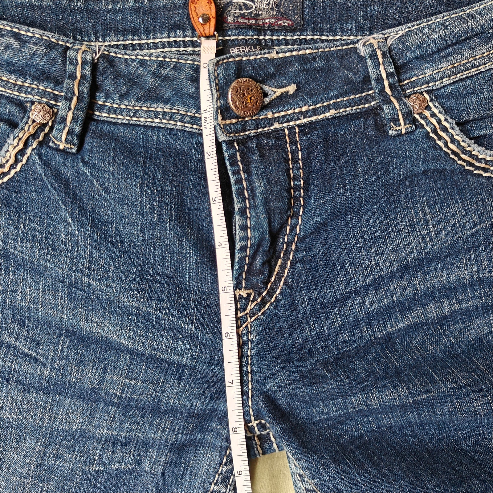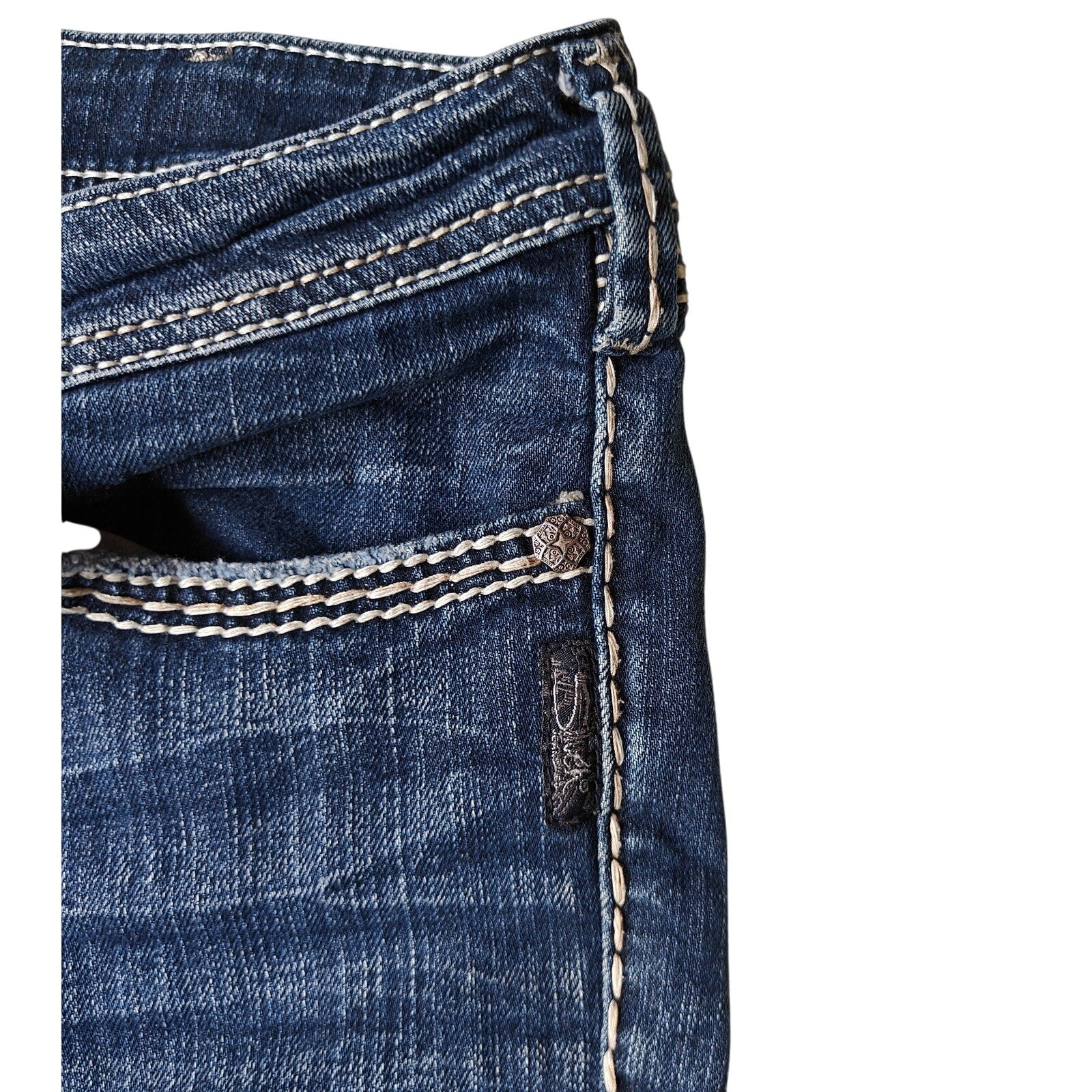 Silver Jeans Co. Berkley Flap Bootcut Jeans Dark Wash Distressed Size 28