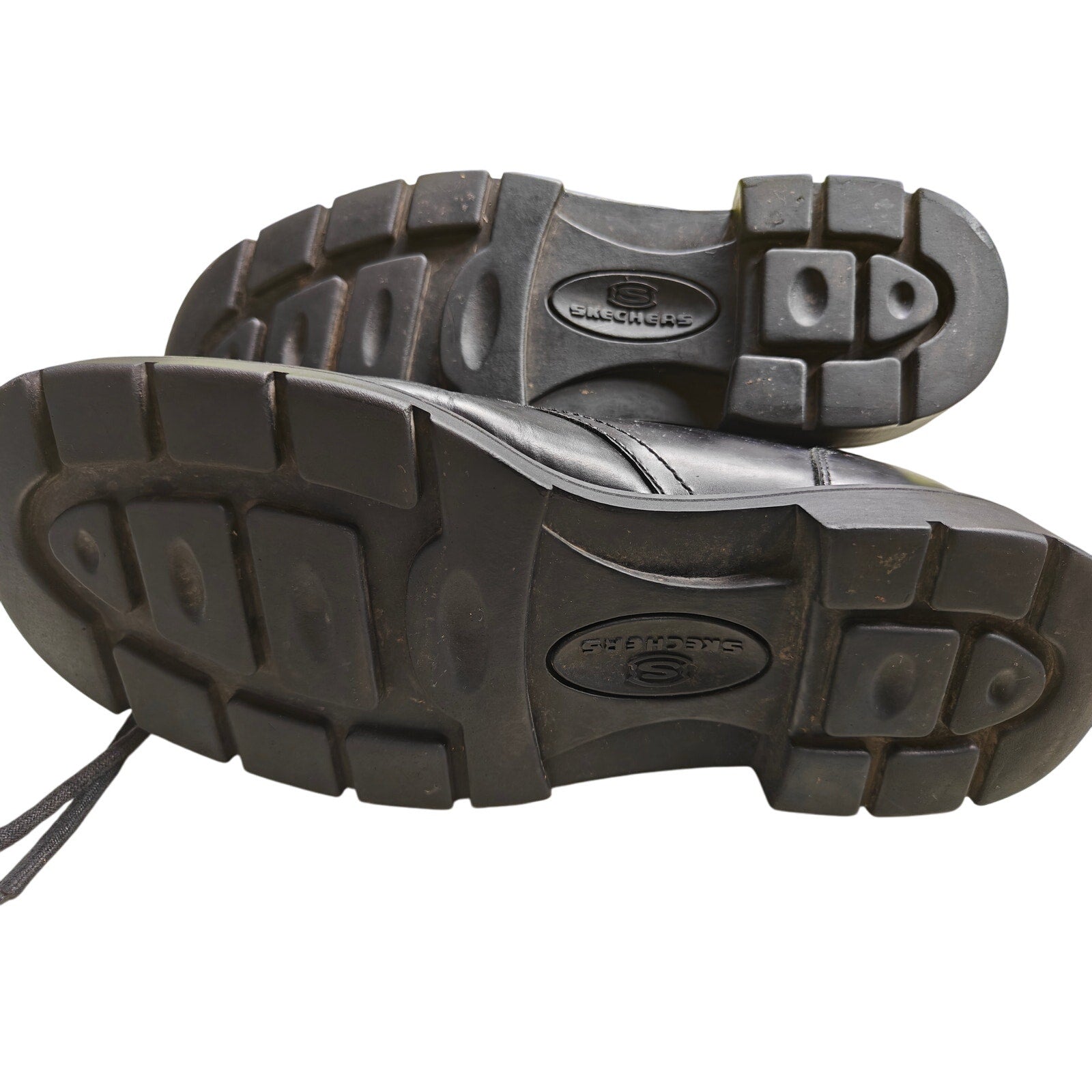 Step into lasting comfort and durability with these classic Skechers black leather oxford shoes. Designed with a sturdy lace-up front, padded collar, and slip-resistant rubber soles, these shoes are perfect for work, casual wear, or anyone needing dependable everyday footwear.