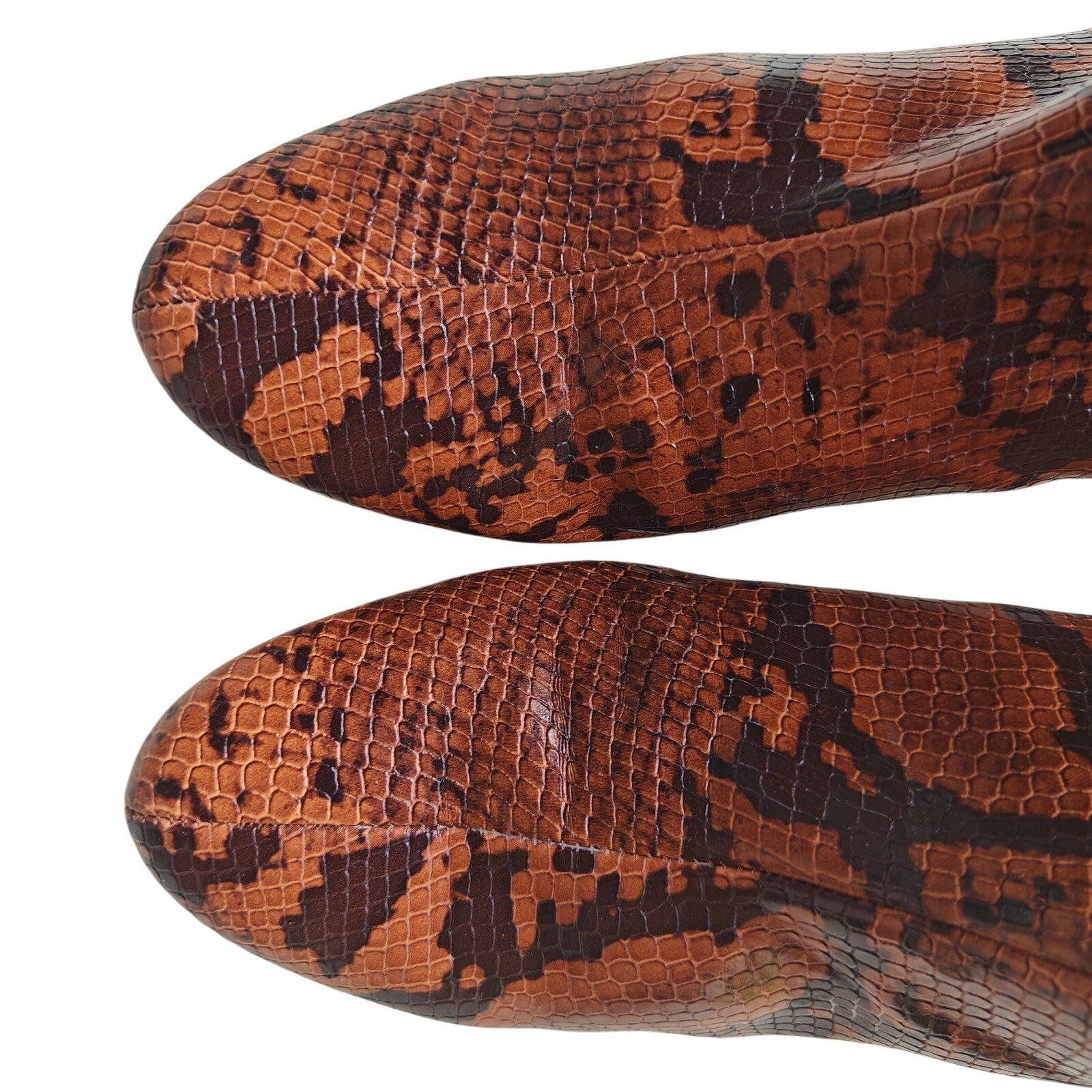 Elevate your style with these chic Urban Outfitters snake print ankle boots. Designed with a bold faux snakeskin pattern in rich brown and black tones, these boots feature a sturdy block heel and convenient side zipper for easy wear. The pointed toe and sleek silhouette make them versatile for pairing with jeans, dresses, or skirts, perfect for day-to-night looks.
