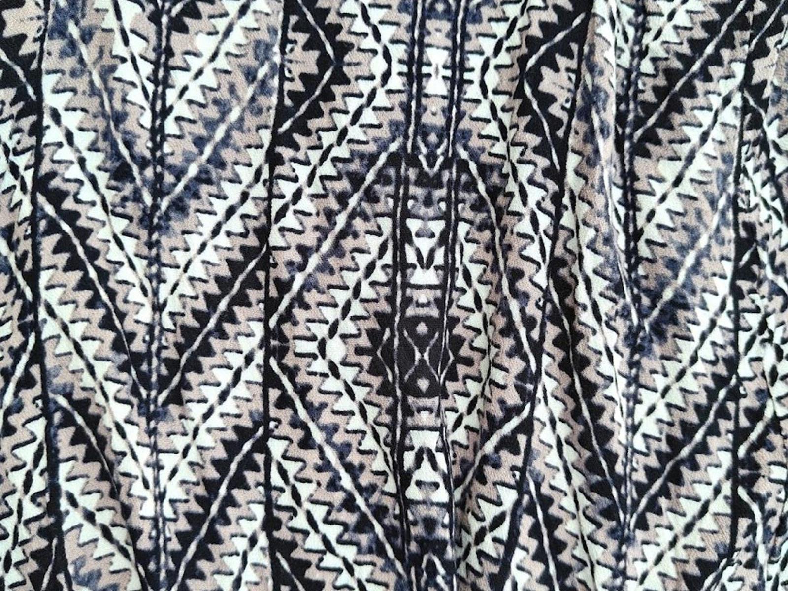 Easy, cute dress you'll love to slip on. Has a soft, stretchy feel. Lined. Geometric pattern with tank accents.