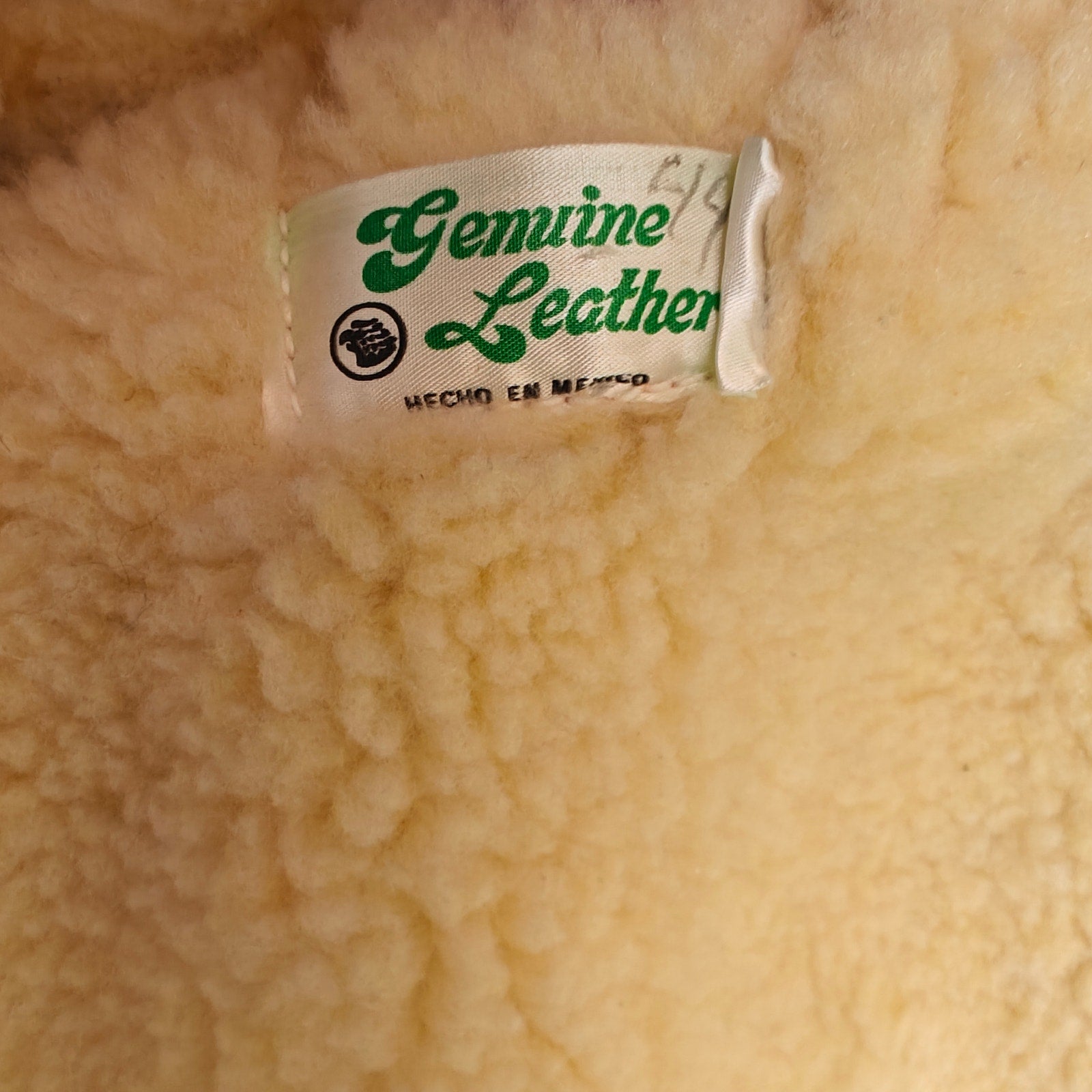 Cozy, classic Western vibes. This vintage (circa 1970s–early 1980s) leather vest features a rich brown genuine suede outer with plush sherpa (shearling-style) lining, snap-front closure, and four front pockets with western yoke stitching. Tag reads “Genuine Leather – Hecho en México.” Great for rodeo, ranch, boho, or festival styling—wear over flannels or hoodies year-round.