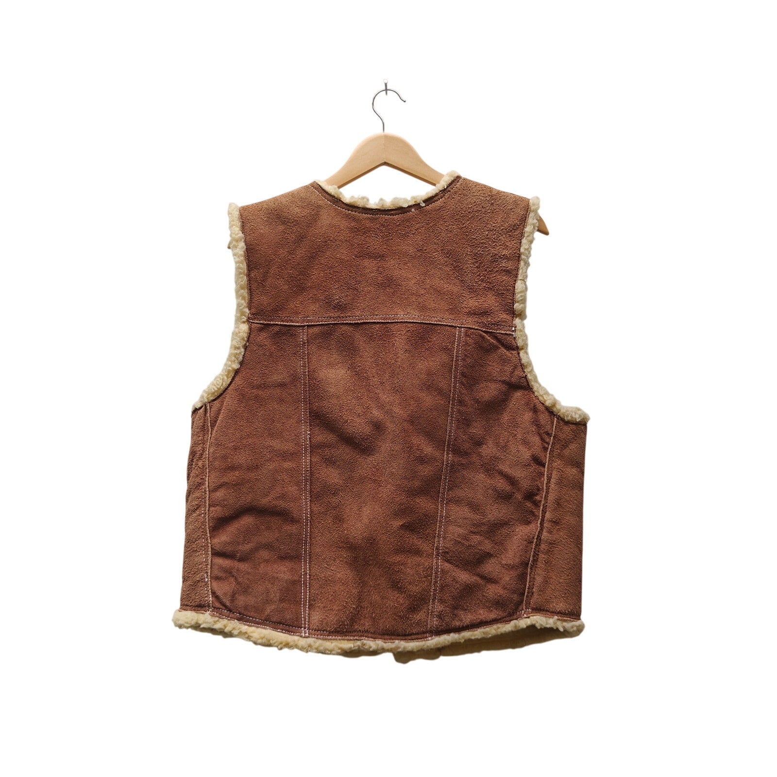 Vintage 70s Suede Leather Sherpa Vest | Western Snap Front | Made in Mexico | Brown Rancher Shearling-Style Unisex