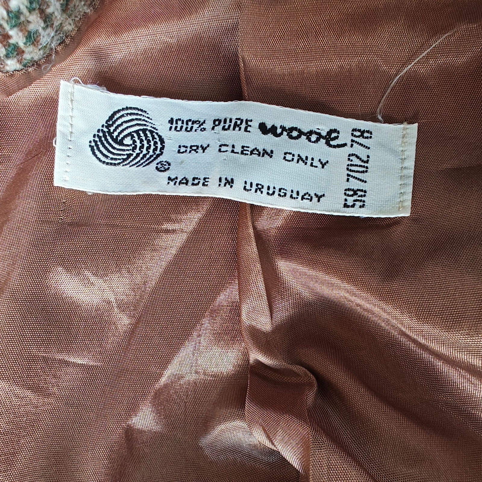 Vintage 70s Wool Tweed Jacket Made in Uruguay Brown Checkered Houndstooth Coat