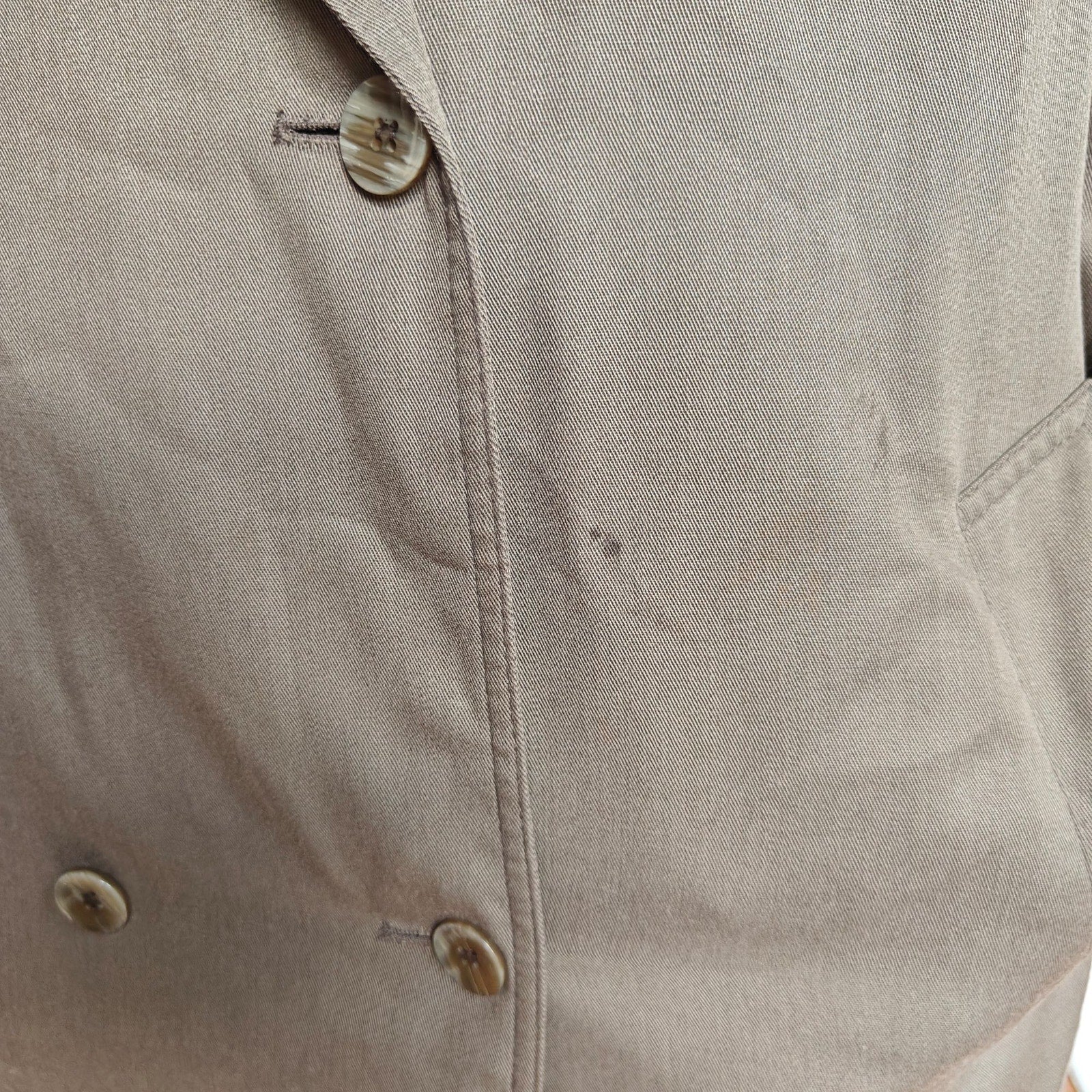 Classic vintage London Fog trench coat in a timeless taupe brown shade. This double-breasted coat features: