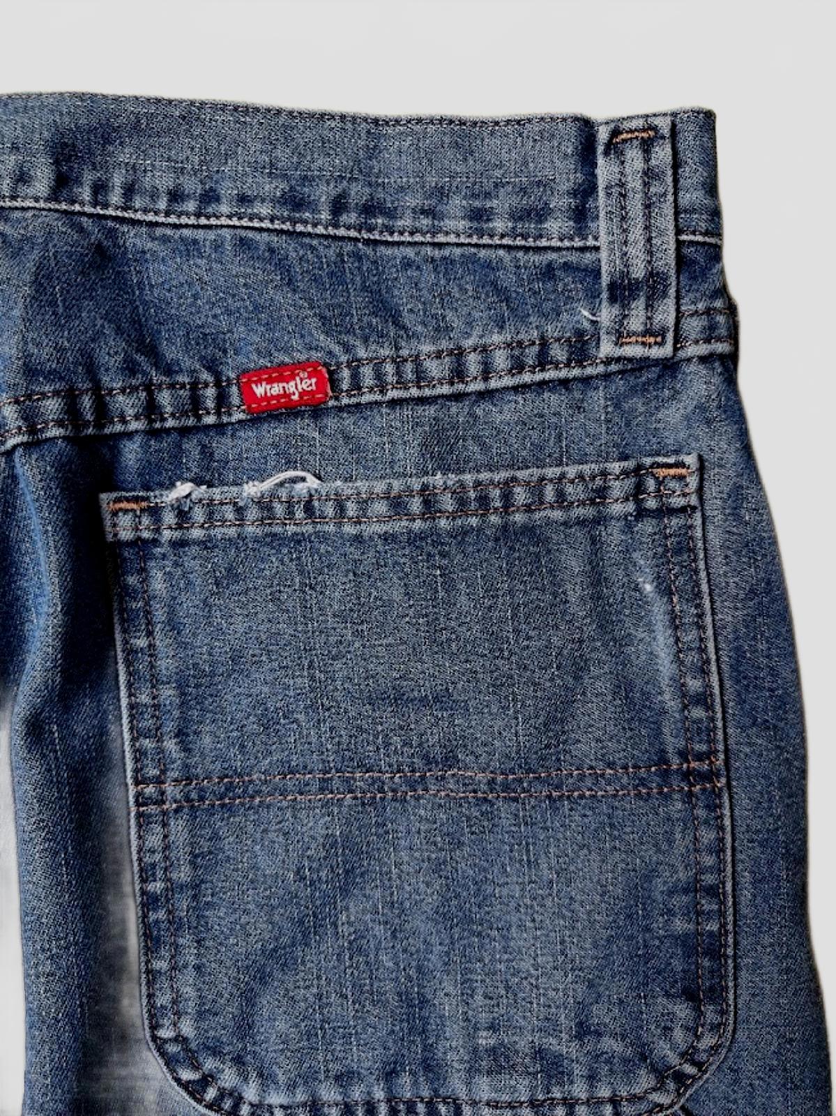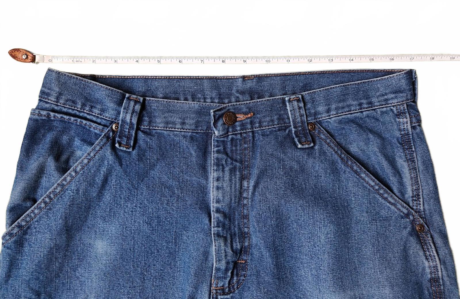 These men's Wrangler carpenter style jeans are in great condition. Medium wash, zip fly.